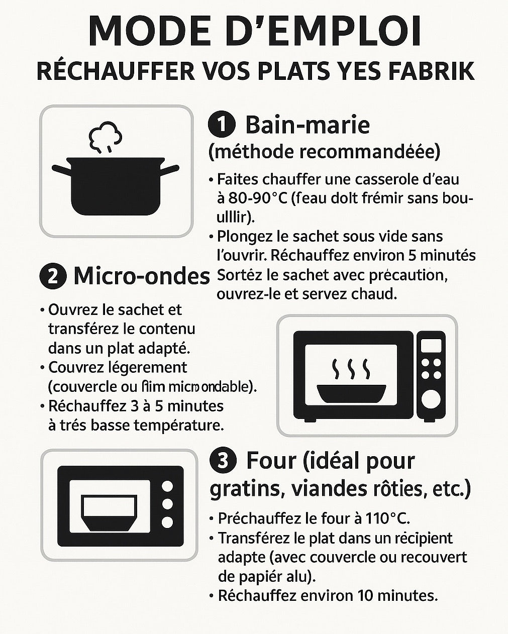 • Un conditionnement sous vide, pour une conservation longue durée sans additifs, dans le respect total de la recette et du goût.